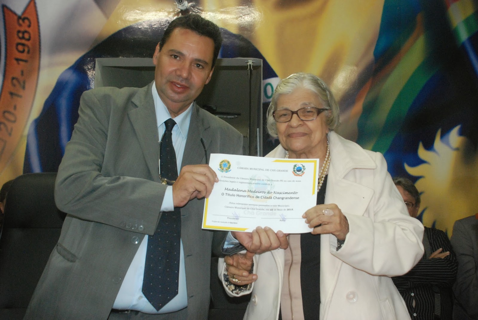 “Dona Madalena é uma figura muito conhecida no estado de Pernambuco, Gravatá e Chã Grande. É uma pessoa que tem serviço prestado para a população carente sem ninguém saber. E eu conversando com amigos espíritas e pessoas mais antigas da cidade, todo mundo achou que ela merecia esse título de cidadão changrandense, que ela conhece Chã Grande há 75 anos. Foi um orgulho muito grande conceder este título de cidadã changrandense”, diz Gilvan Pereira, autor do projeto.
